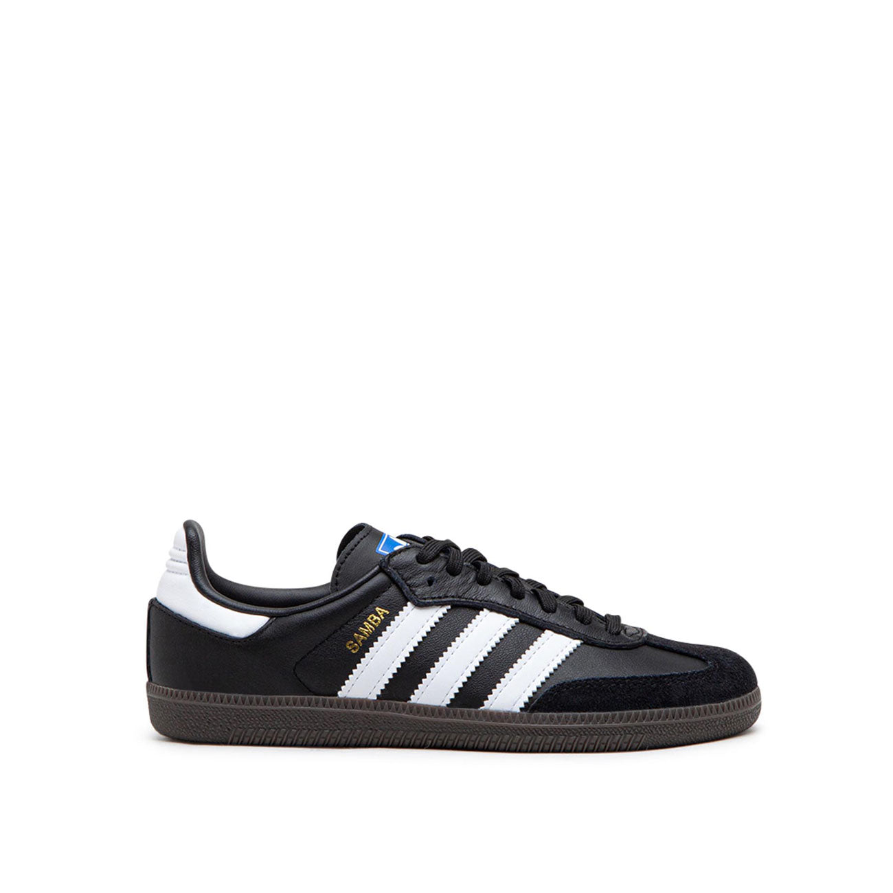 adithtdas Samba kam 1950 zum ersten Mal auf den Markt - mittlerweile ist er ein wahrer Klassiker. Dieses Modell hat den traditionellen Farbweg bestehend aus schwarzem Lederupper mit weißen Logostreifen und brauner Gumsohle – jetzt auch in kleineren Größen.