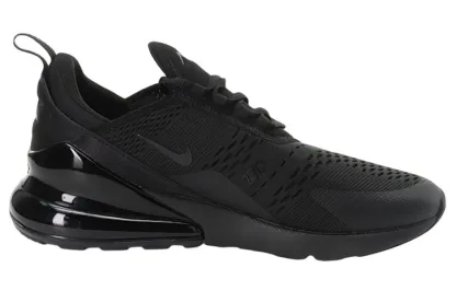s Air Max 270 is a sneaker that takes design inspiration from both the Air Max 180 and Air Max 93. The all-black mesh upper provides a contrast in textures with tonal panels along the midfoot and toe. Swoosh branding adds a pop of color to this otherwise stealthy sneaker. The Air Max unit comes in black, sharing space along the bottom of the profile with a matching dual-density foam midsole. This shoe is perfect for those who want a versatile sneaker that they can wear with anything in their closet.
