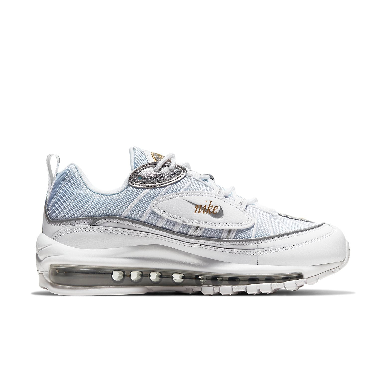 Nithtke Womens WMNS Athtir Max 98 'Blue Chill' White/Metallic Gold/Metallic Silver CT2547-100